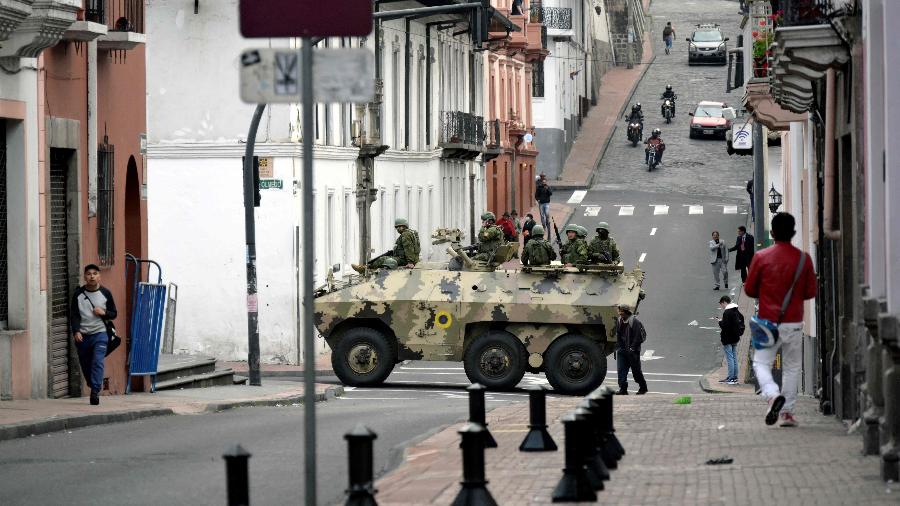 Exército equatoriano vigia o entorno do Palácio de Carondelet, em Quito (foto: Rodrigo Buendia/AFP)