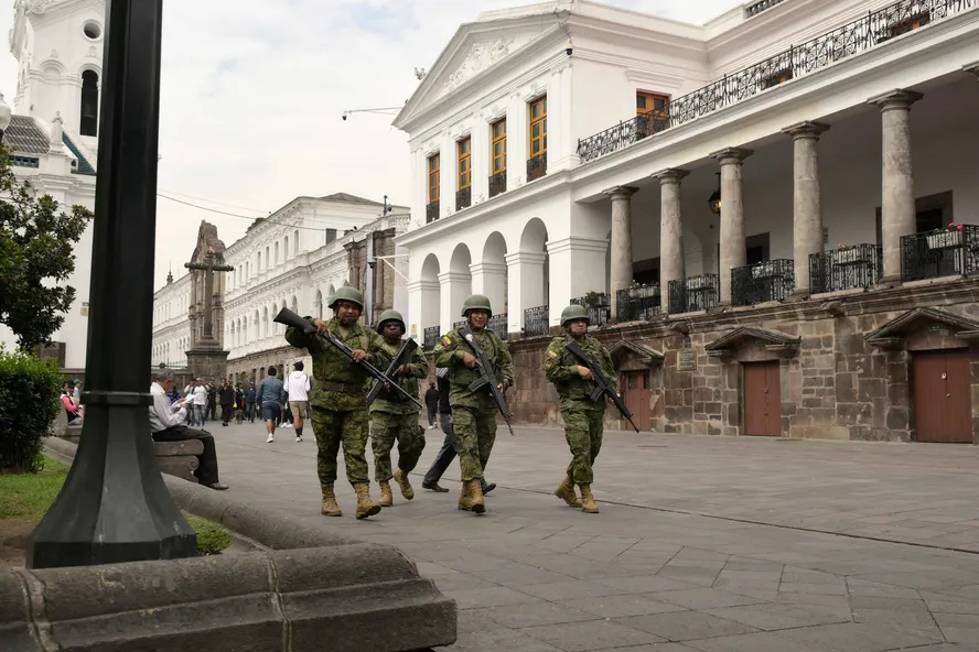 Após ataques, o exército reforça a segurança do Palácio de Carondelet, sede do governo equatoriano (foto: Rodrigo Buendia/AFP)